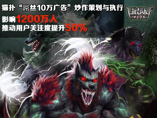 要想产品比别人更火,只霸王“硬”上弓可不行,在狼队这个项目上,宜友第一次尝试“软硬兼施”的推广模式,策划猫扑“屌丝10万广告”炒作事件,大幅度提升游戏关注度。